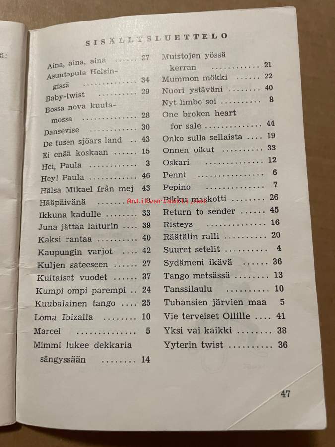 | Saatavilla | 1 kpl | | Julkaisuvuosi | 1963 | | Sivuja | 50 | | Kunto | K2 | | Sidonta/painoasu | Nidottu (pehmeäk.) | | Kielet | Suomi |
