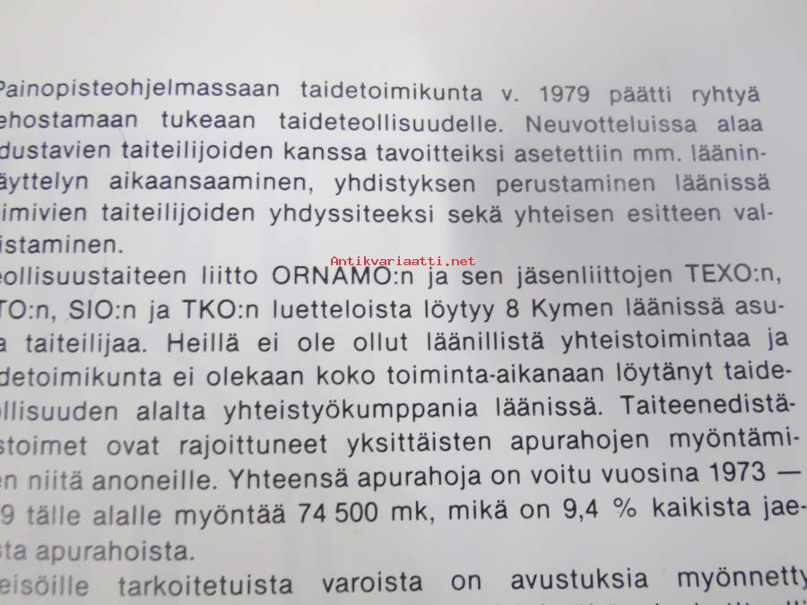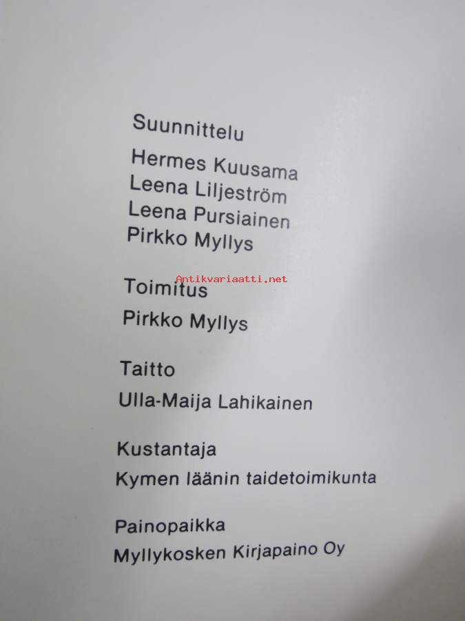 Taideteollisus Kymen läänissä - luettelo taideteollisustaiteilijoista; Leena Liljeström, Hannu Matilainen, Raila Vainonen, Tauno Wirkkala, Ene Tatti, Jorma Alatalo..
