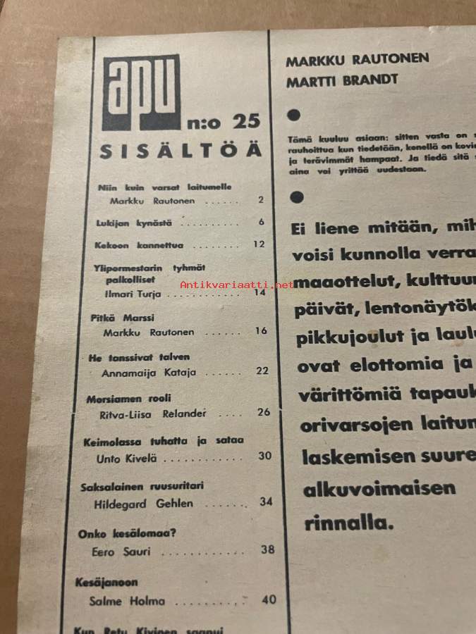 Apu 1966 nr 25, Keimolan vauhtikisat, Aladinin talon huutokauppa (Hamina)