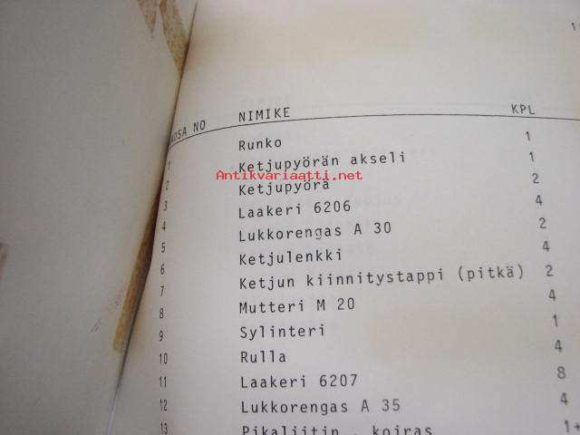 | Saatavilla | 1 kpl | | Julkaisuvuosi | 198? | | Sivuja | 12 | | Kunto | K3 | | Sidonta/painoasu | Muu | | Kielet | Suomi |