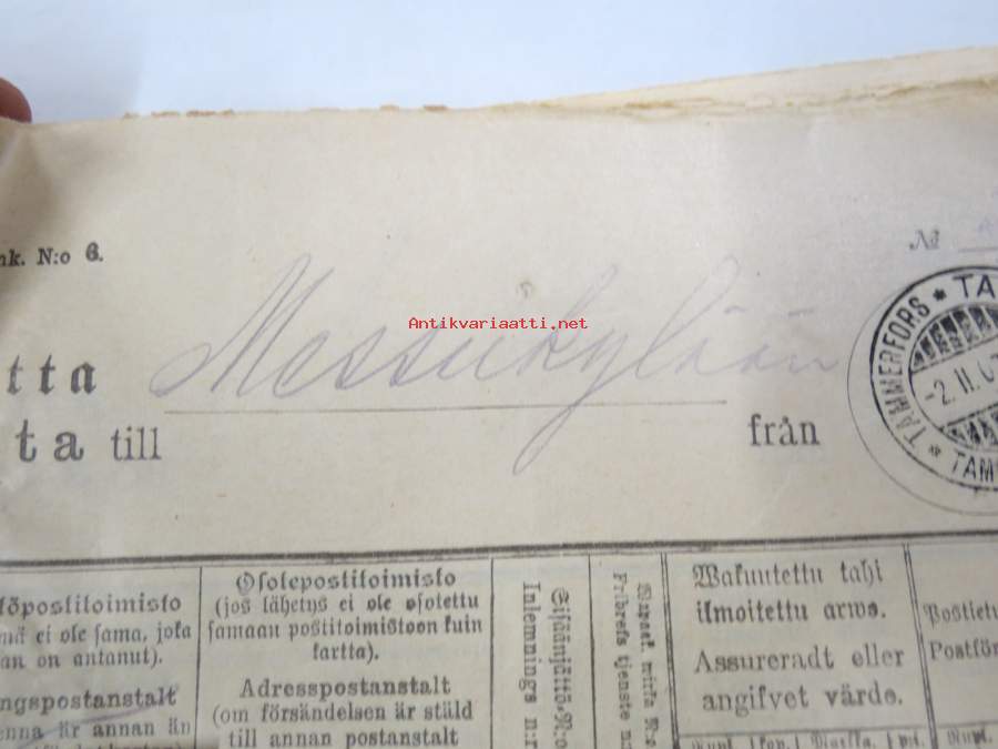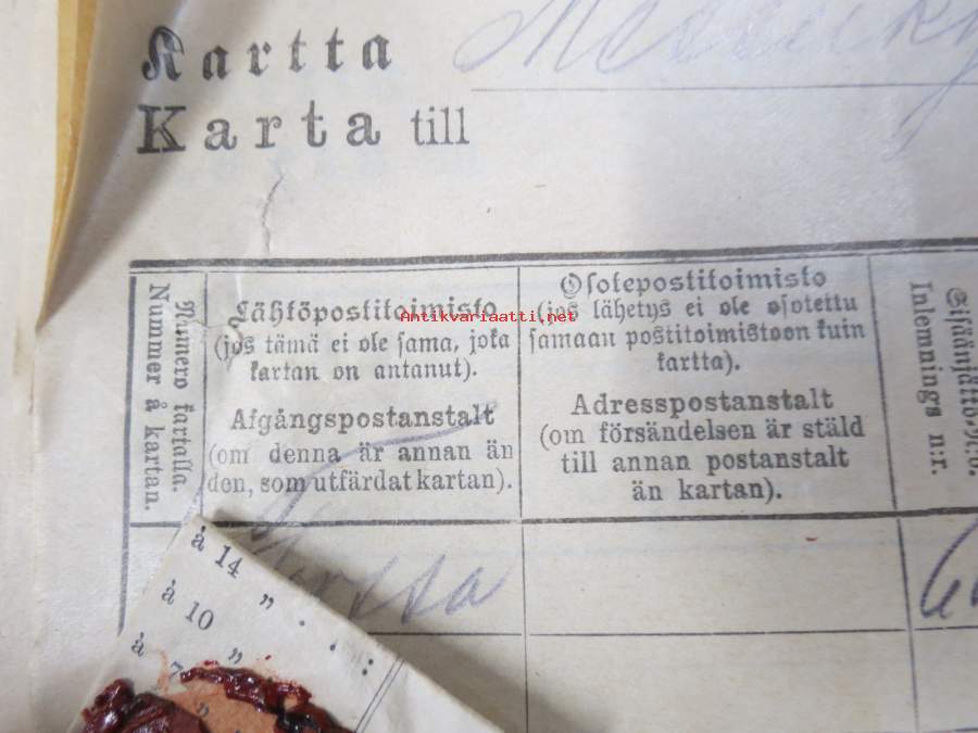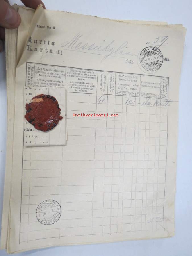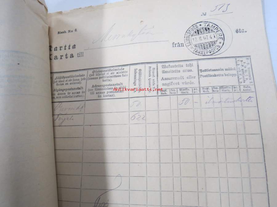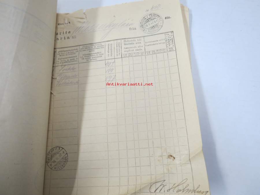 Posti, 190719 x 26 cm postihistoriallinen kohde, 21 erillistä lomaketta niputettu yhteen.