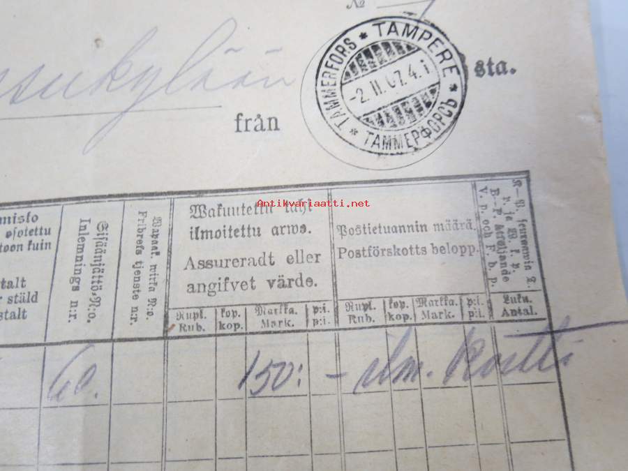 Kartta 2.2.-28.2.1907 Messukylään Tampereelta / Karta till... - Postilaitoksen kirjattujen lähetysten luettelo, sinettileima