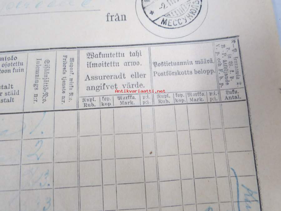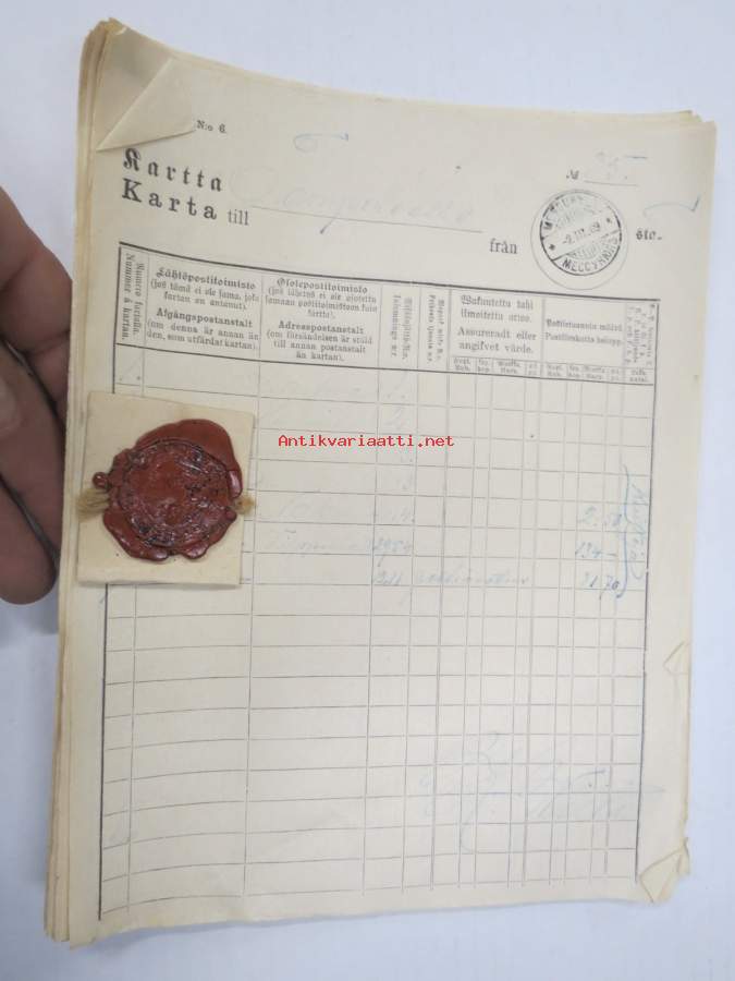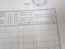 Posti, 190919 x 26 cm postihistoriallinen kohde, 20 erillistä lomaketta niputettu yhteen.