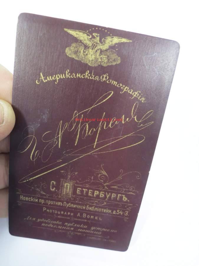 Atelier G.A. Borel, Pietari - Г.А. Борель - С. Петербург -visiittikorttivalokuva, CDV, huomaa, että nimi on myös upotuspainettuna kuvapinnassa