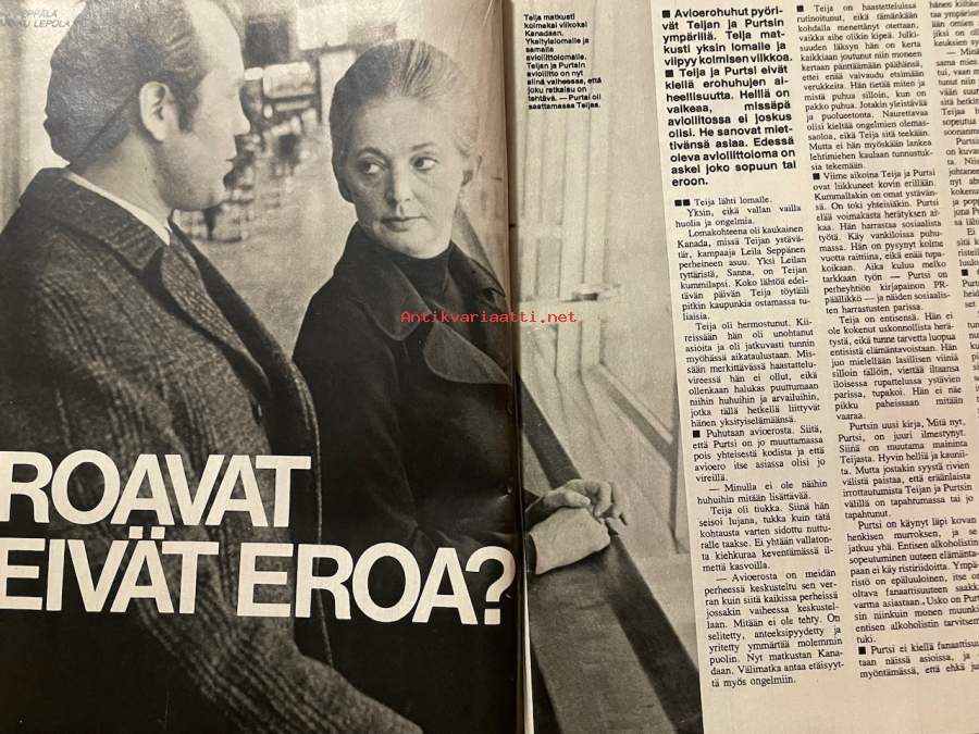 | Saatavilla | 1 kpl | | Julkaisuvuosi | 1972 | | Sivuja | 108 | | Kunto | K2 | | Sidonta/painoasu | Lehti | | Kielet | Suomi |