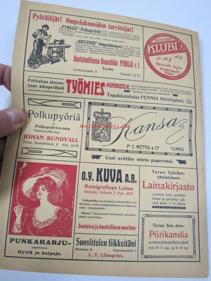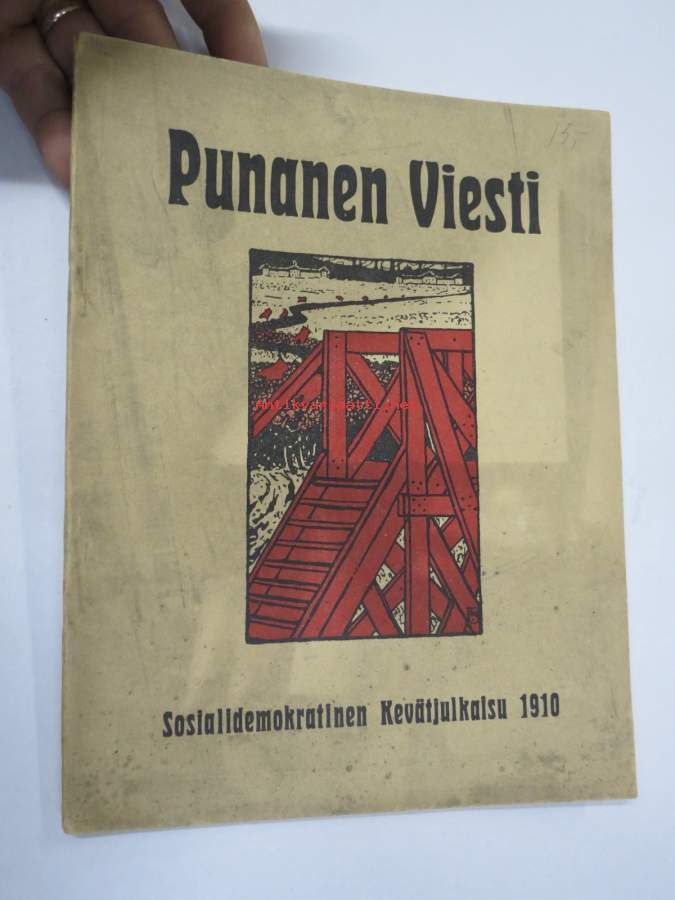 Punanen Viesti (Punainen wiesti) 1910 - Sosialidemokraattinen kevätjulkaisu, propagandistinen, osin tosipohjaista tekstiä, osin kaunokirjallista, kuvitusta