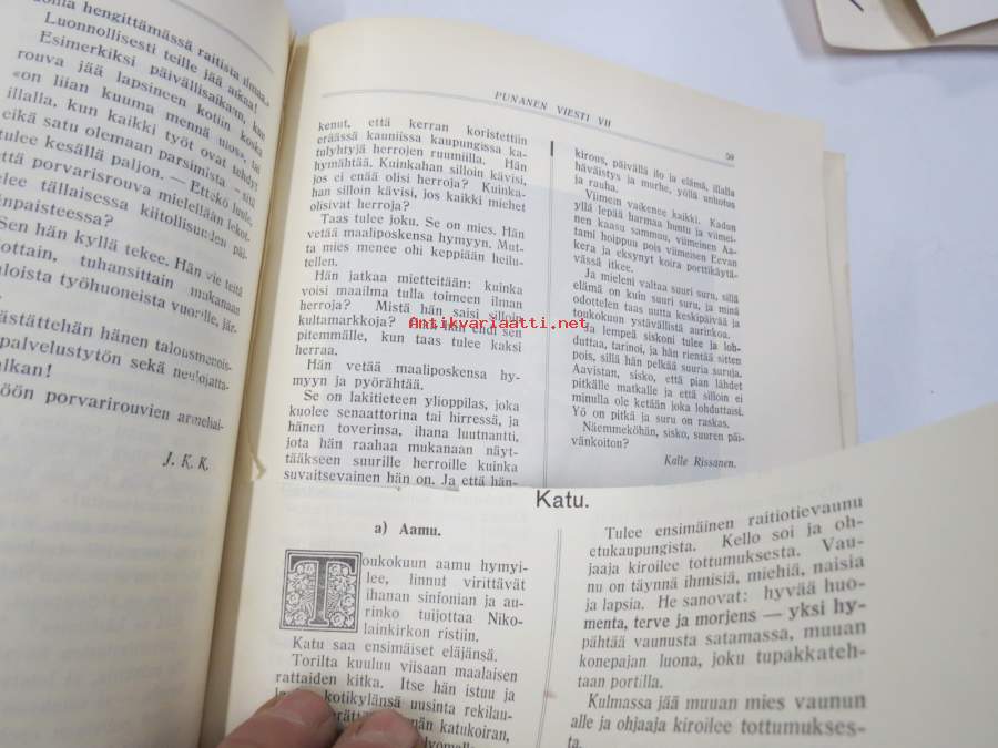 Punanen Viesti (Punainen wiesti) 1913 - Sosialidemokraattinen kevätjulkaisu, propagandistinen, osin tosipohjaista tekstiä, osin kaunokirjallista, kuvitusta