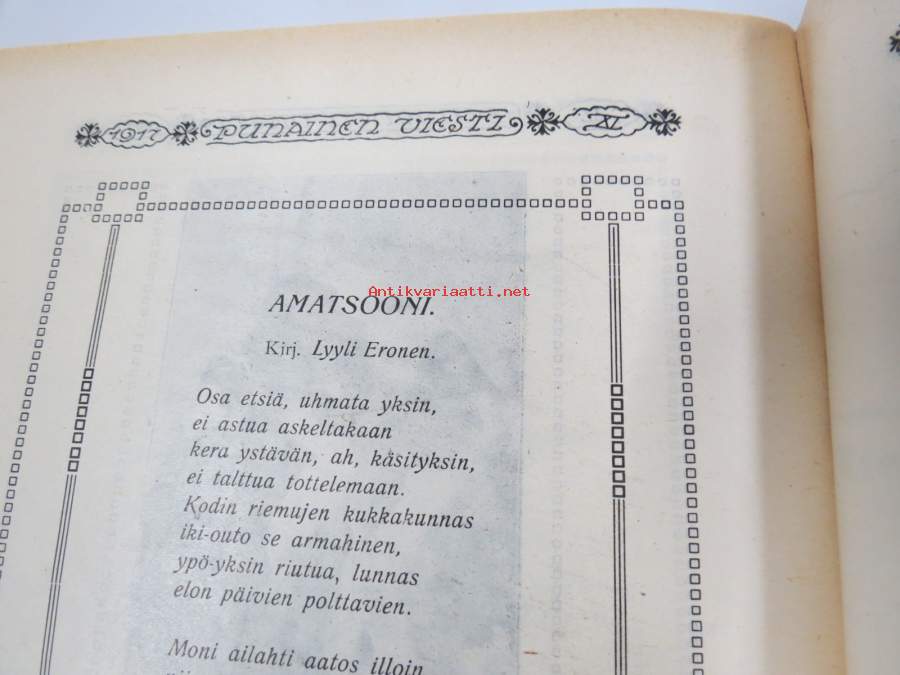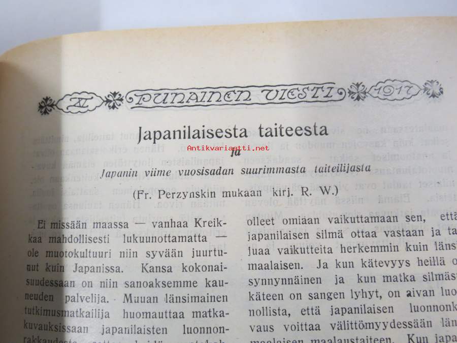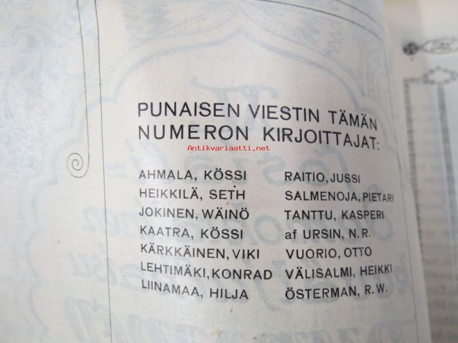Punanen Viesti (Punainen wiesti) 1917 - Sosialidemokraattinen kevätjulkaisu, propagandistinen, osin tosipohjaista tekstiä, osin kaunokirjallista, kuvitusta