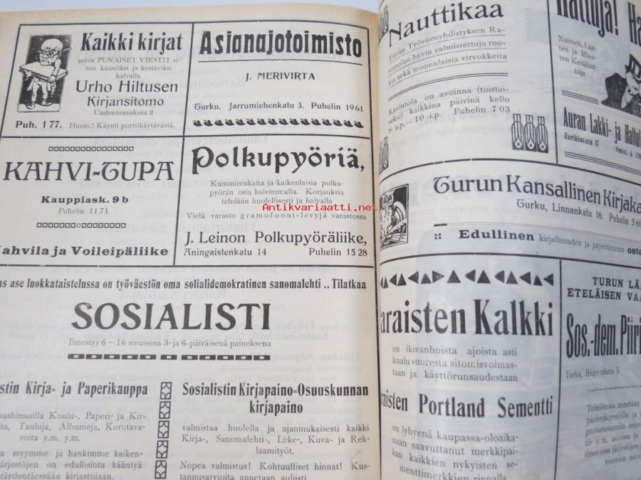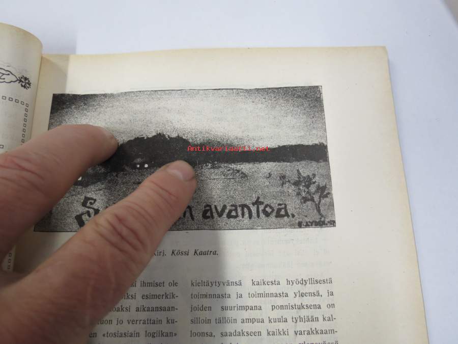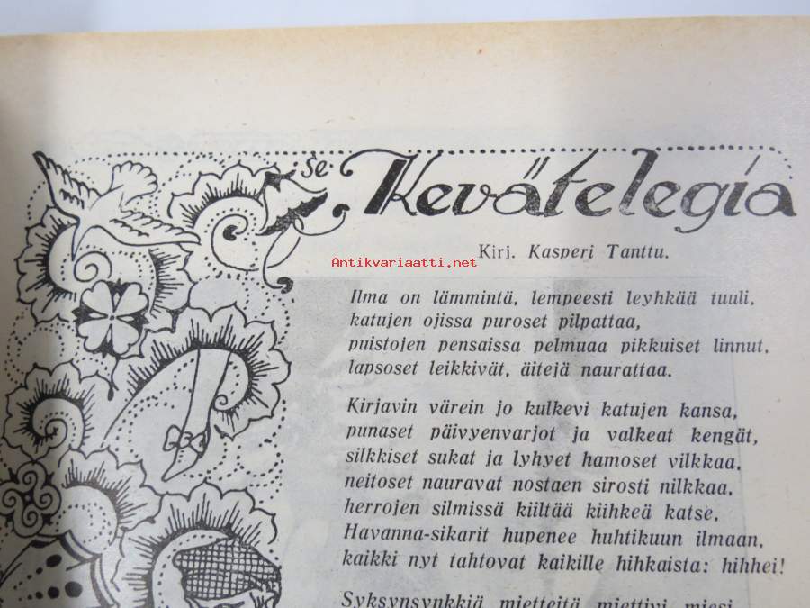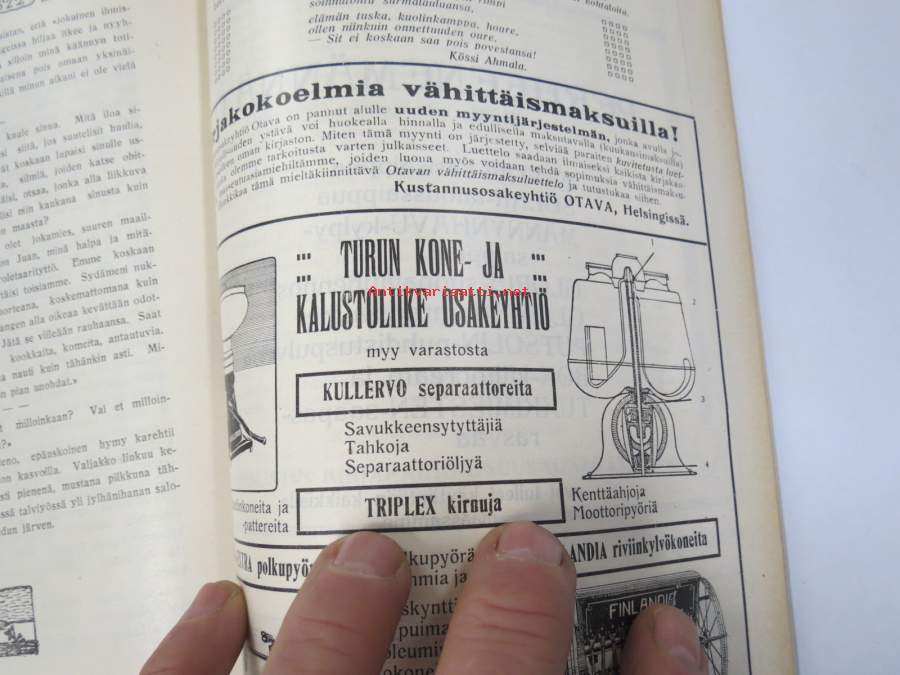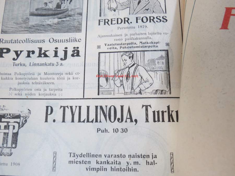 | Saatavilla | 1 kpl | | Julkaisuvuosi | 1917 | | Sivuja | 82 + mainossivut | | Kunto | K2 | | Sidonta/painoasu | Nidottu (pehmeäk.) | | Kielet | Suomi |