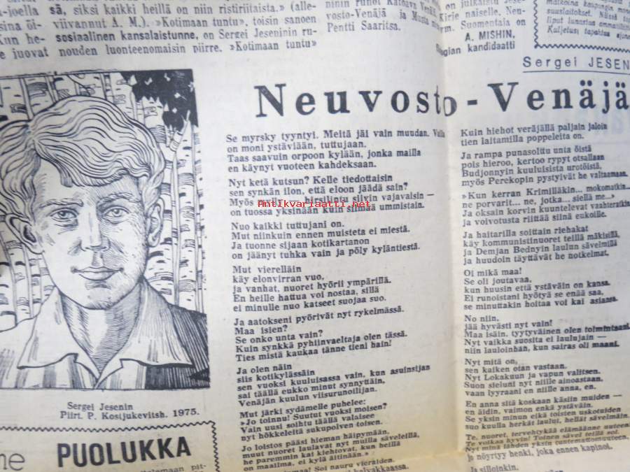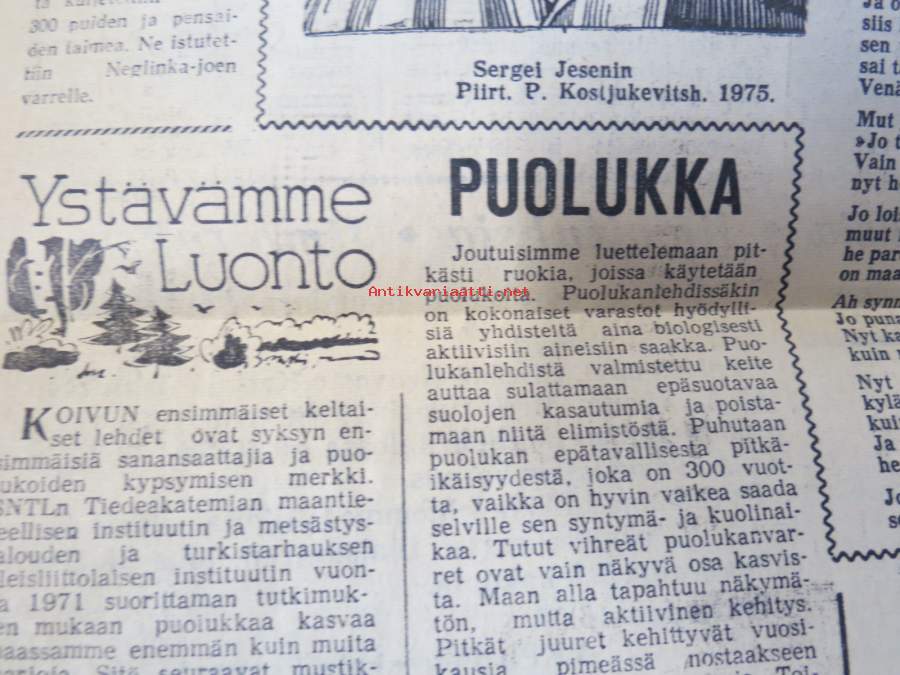 | Saatavilla | 1 kpl | | Julkaisuvuosi | 1975 | | Sivuja | 4 | | Kunto | K2 | | Sidonta/painoasu | Lehti | | Kielet | Suomi |