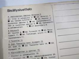 | Saatavilla | 1 kpl | | Julkaisuvuosi | 1972 | | Sivuja | 52 | | Kunto | K2 | | Sidonta/painoasu | Nidottu (pehmeäk.) | | Kielet | Suomi |