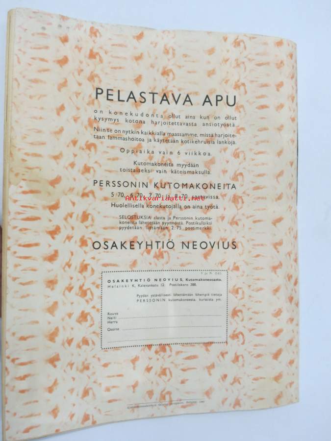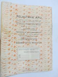 | Saatavilla | 1 kpl | | Julkaisuvuosi | 1942 | | Sivuja | 36 | | Kunto | K2 | | Sidonta/painoasu | Lehti | | Kielet | Suomi |