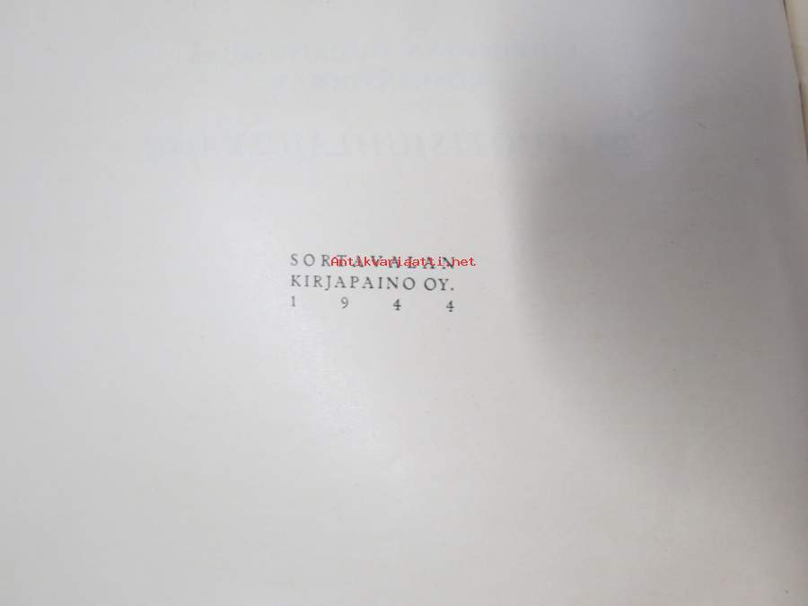 | Saatavilla | 1 kpl | | Julkaisuvuosi | 1944 | | Sivuja | 59 | | Painos | 1. | | Kunto | K3 | | Sidonta/painoasu | Nidottu (pehmeäk.) | | Kielet | Suomi |