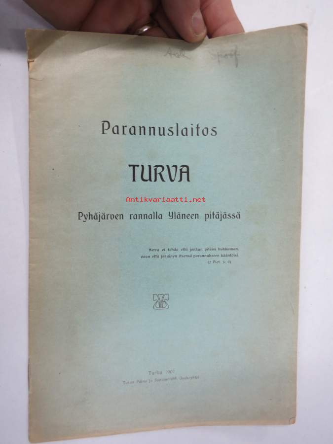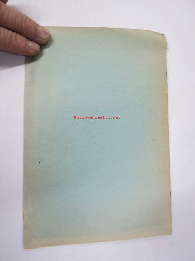 | Saatavilla | 1 kpl | | Julkaisuvuosi | 1907 | | Sivuja | 11 | | Kunto | K2 | | Sidonta/painoasu | Nidottu (pehmeäk.) | | Kielet | Suomi |