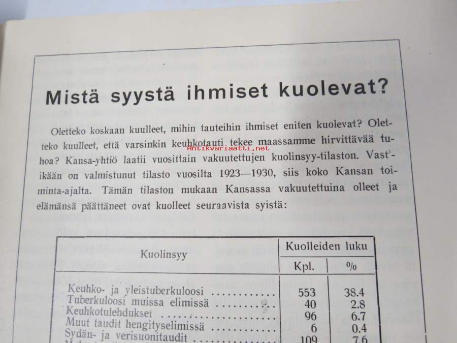 | Saatavilla | 1 kpl | | Julkaisuvuosi | 1931 | | Kunto | K2 | | Sidonta/painoasu | Nidottu (pehmeäk.) | | Kielet | Suomi |