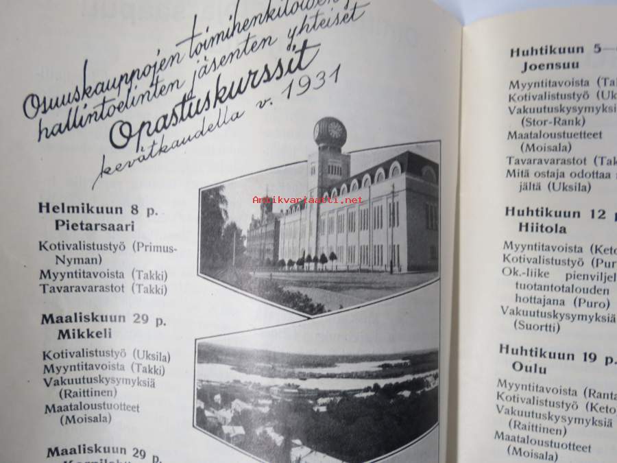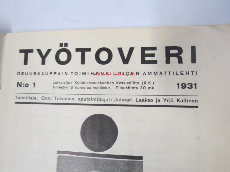 Työtoveri 1931 nro 1 - Osuuskauppain toimihenkilöiden ammattilehti, mm. mainontaan liittyviä artikkeleita ja materiaalia