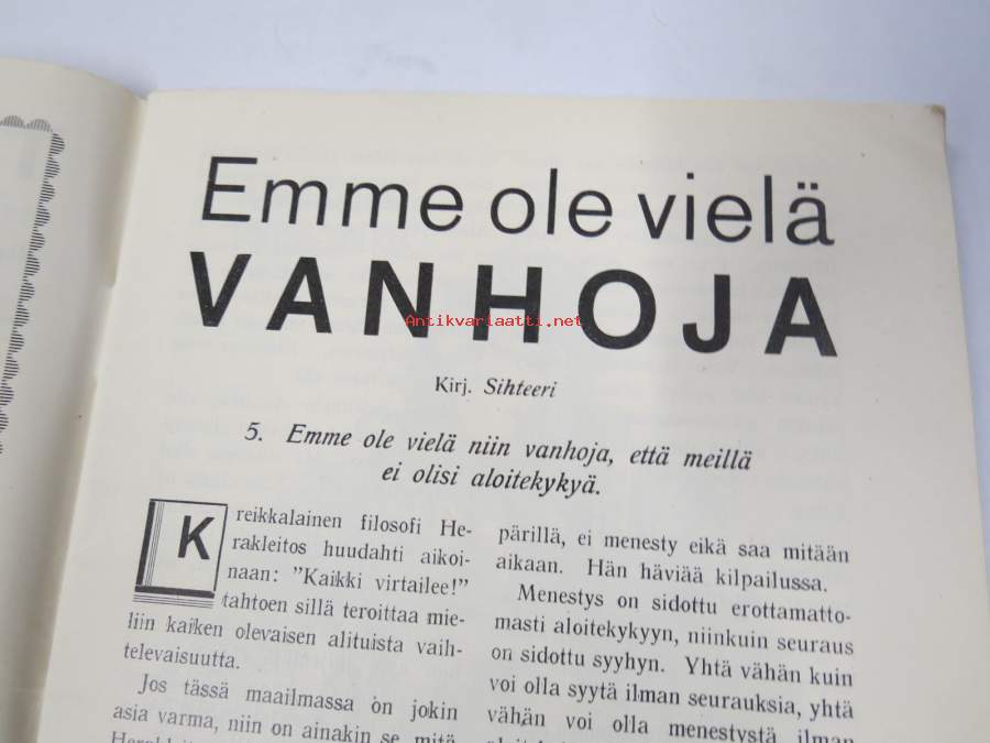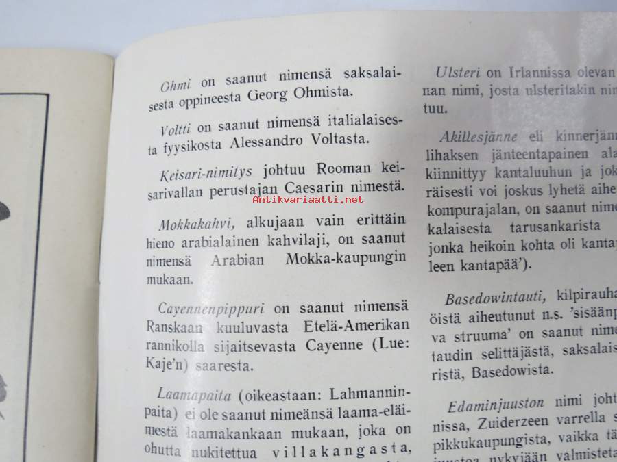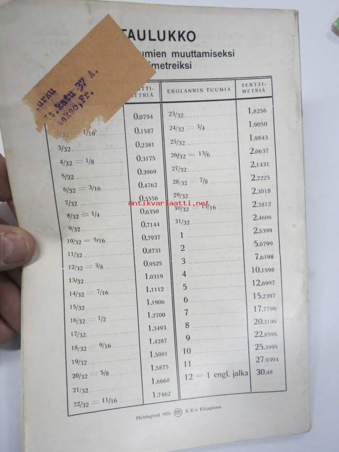 | Saatavilla | 1 kpl | | Julkaisuvuosi | 1931 | | Kunto | K2 | | Sidonta/painoasu | Nidottu (pehmeäk.) | | Kielet | Suomi |