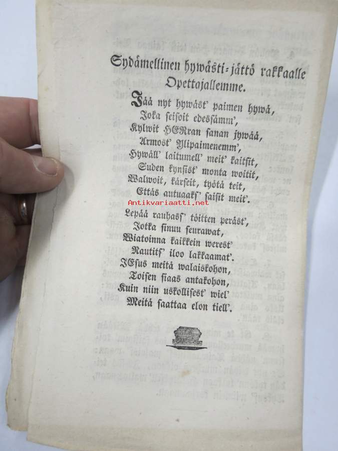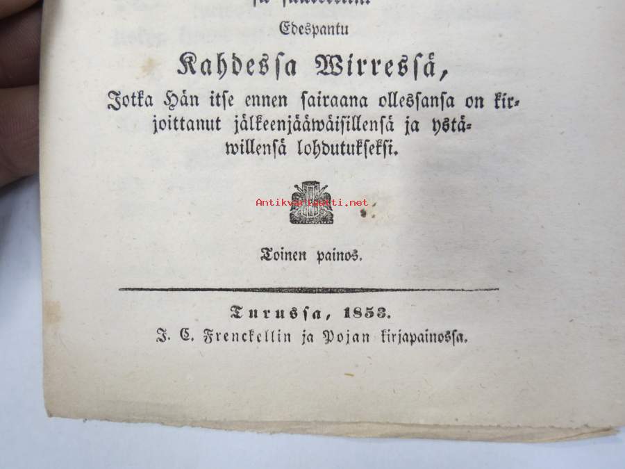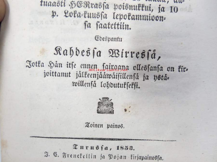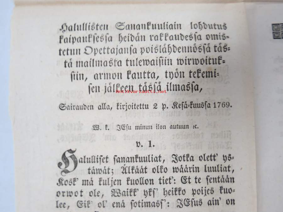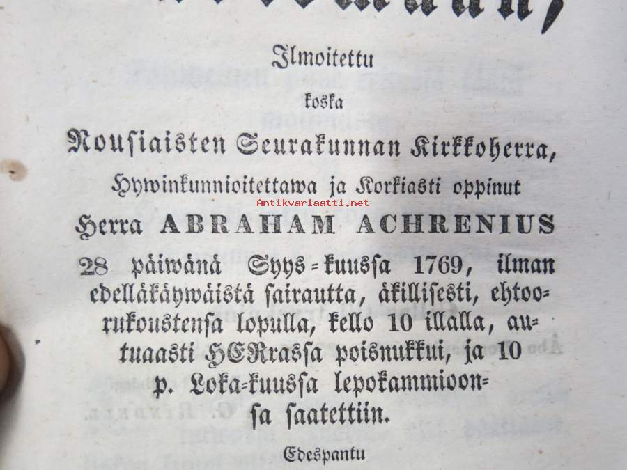 Aikainen valmistus kuolemaan, Ilmoitettu koska Nousiaisten Seurakunnan Kirkkoherra... Abraham Achrenius 28.9.1769, ilman edelläkäywäistä.... edespantu 2 wirrestä