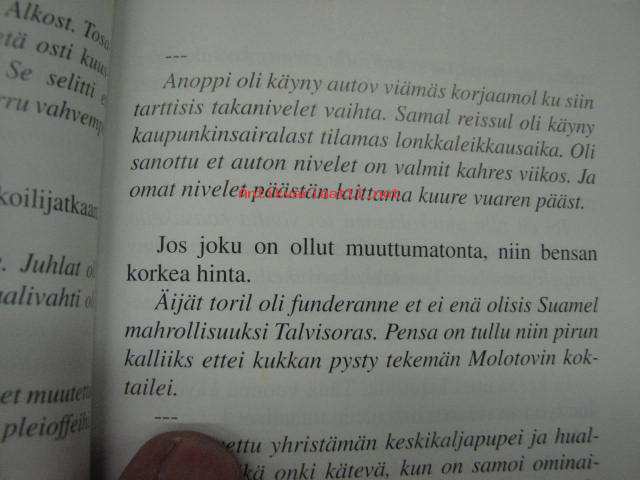 | Saatavilla | 1 kpl | | Julkaisuvuosi | 2005 | | Sivuja | 103 | | Painos | 1. | | Kunto | K3 | | Sidonta/painoasu | Nidottu (pehmeäk.) | | ISBN | 951-97572-9-5 | | Kielet | Suomi |