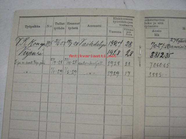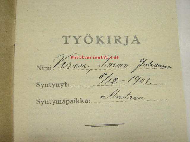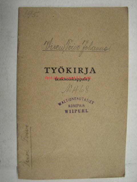 Työkirja Toivo Johannes Vire, Valtionrautatiet konepaja, Viipuri