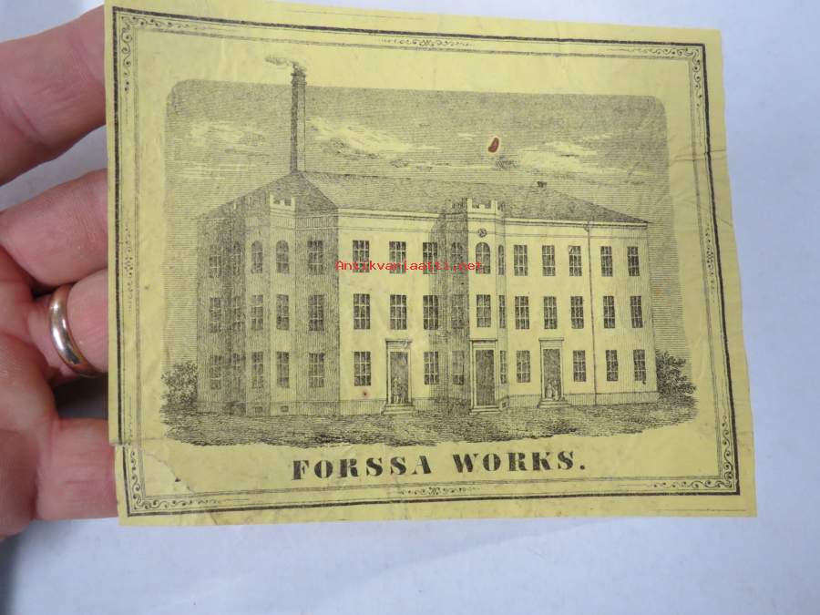 Forssa Works (Forssa Aktiebolag, Axel Wahren), 1850-luku? -kangaspakan etiketti, englanninkielinen