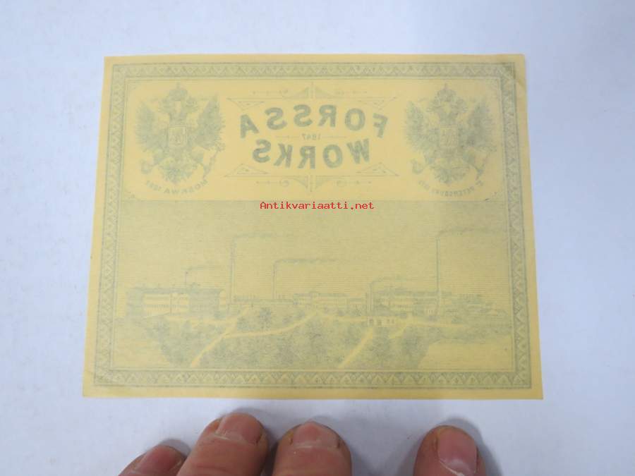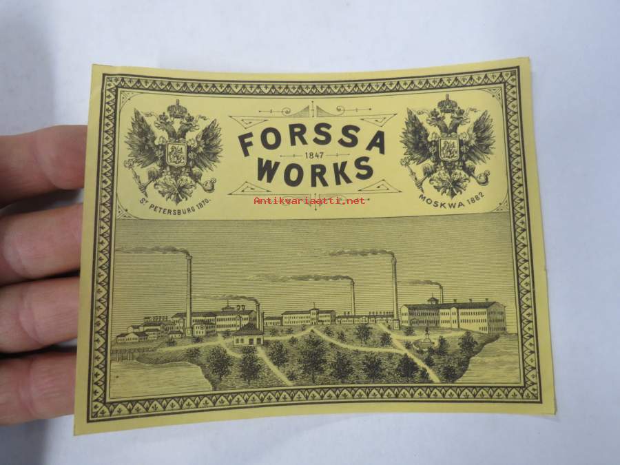 Forssa Works (Forssa Aktiebolag, Axel Wahren), 1880-luku -kangaspakan etiketti, englanninkielinen
