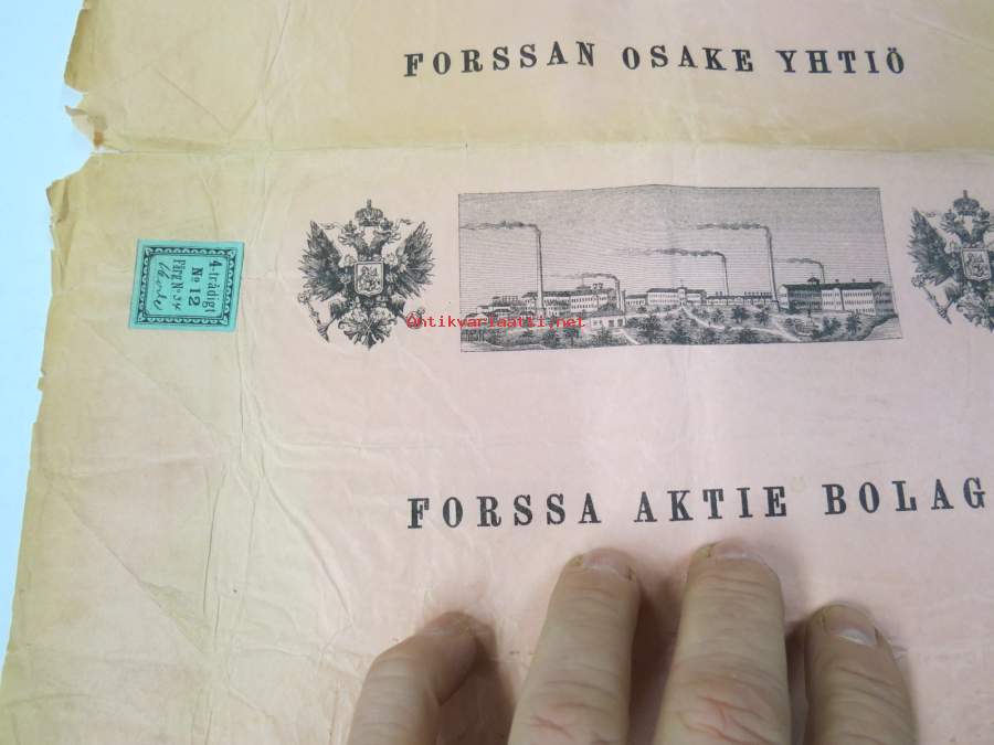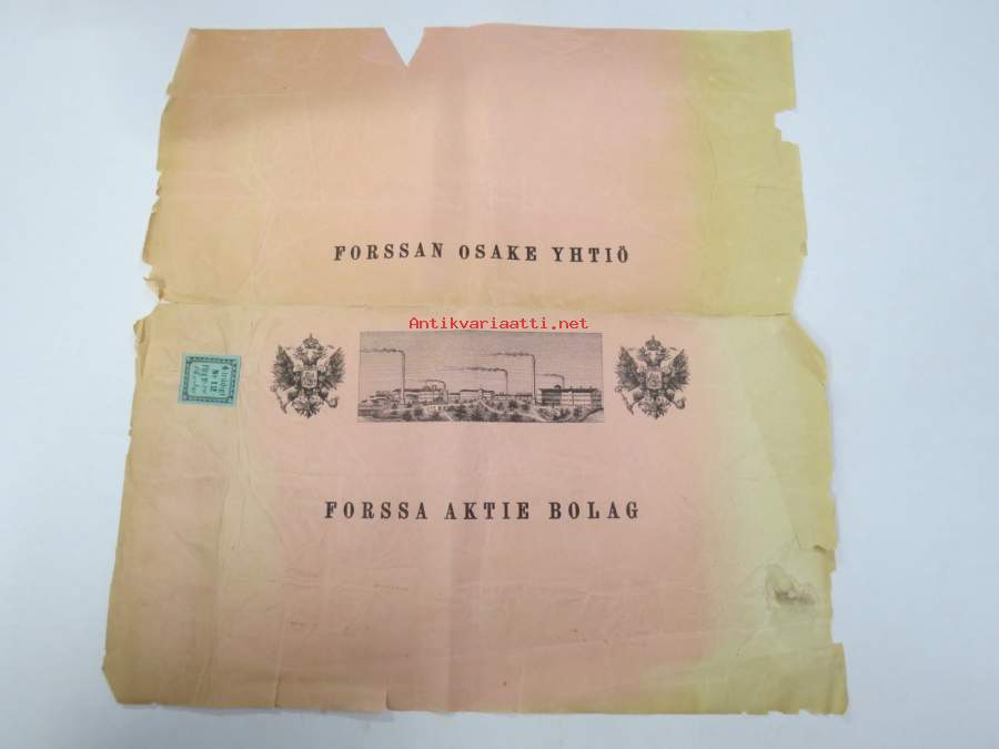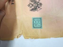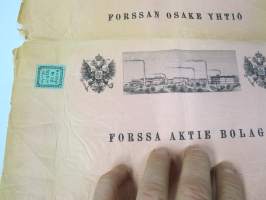 Forssa Aktiebolag 1880-luku -kangaspakan etiketti / pakkauskääre