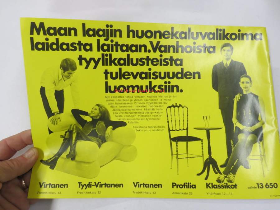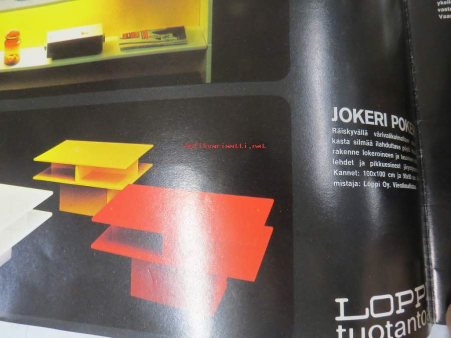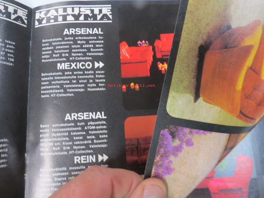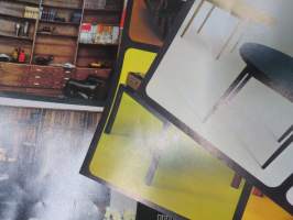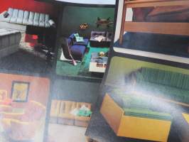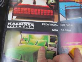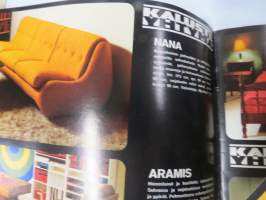 Kaluste-Yhtymä, 197?21 x 30 cm, erittäin hyvä julkaisu 1970-luvun osittain hyvinkin muotokieleltään ja materiaaleiltaan erikoisista huonekaluista.