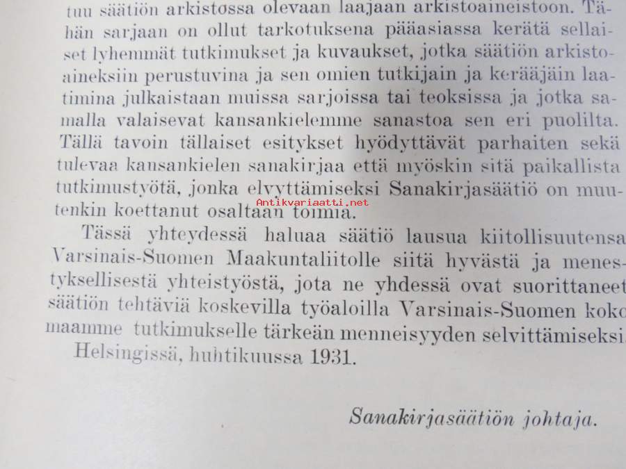 Kustaa Vilkuna, Sanakirjasäätiö, 1931
