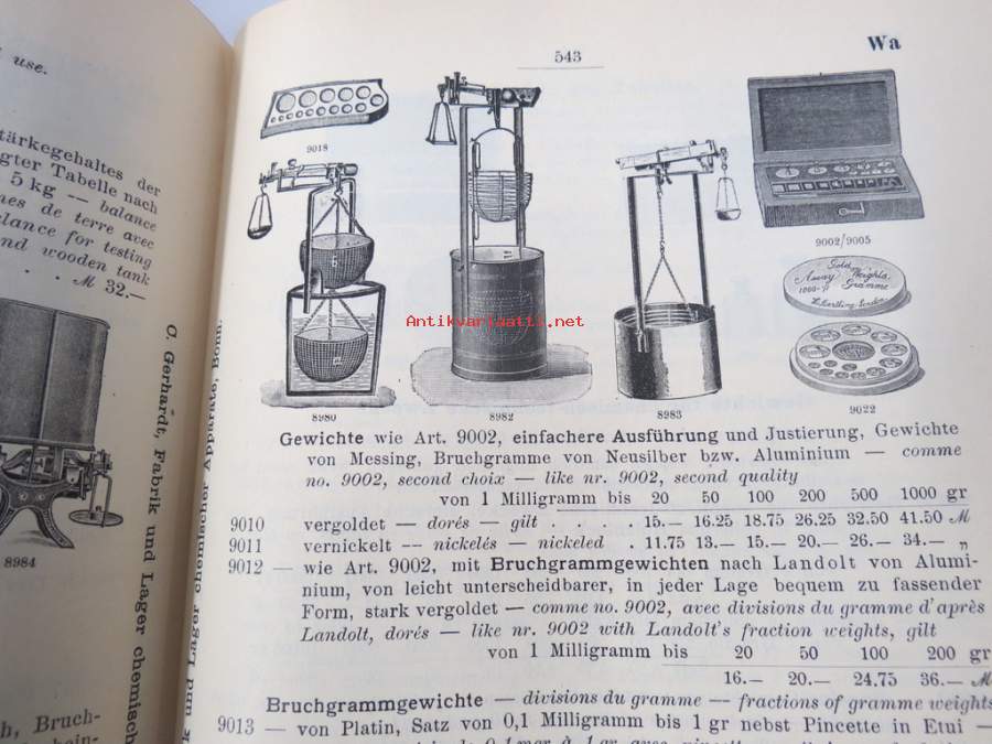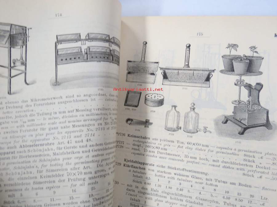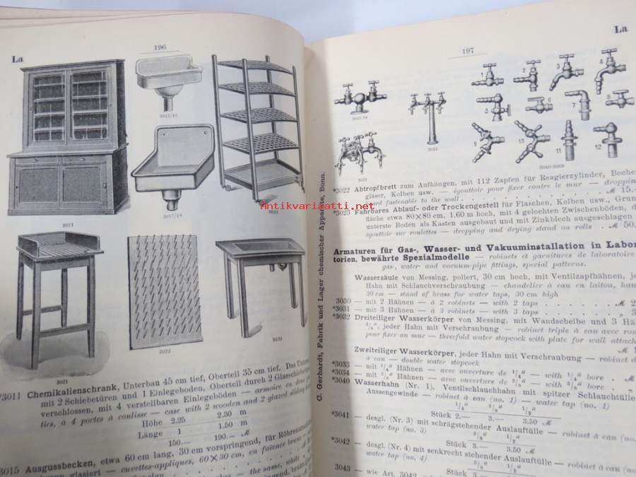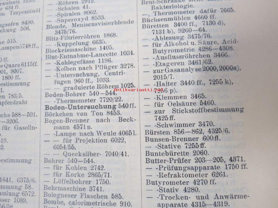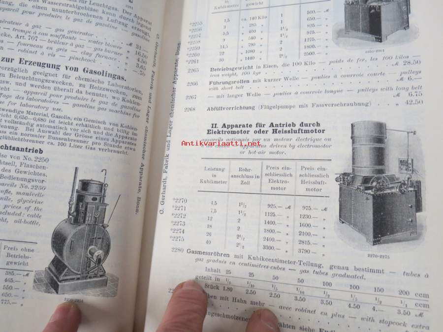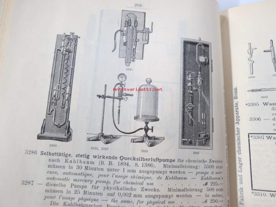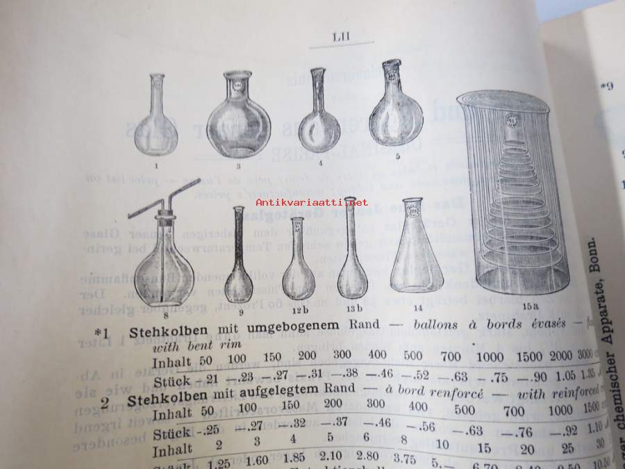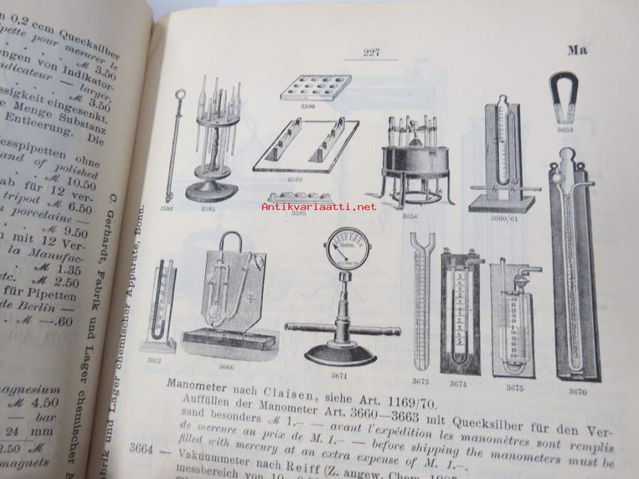 C. Gerhardt Preisverzeichnis über Chemische Apparate und Gerätschaften -kemianalan kojeita ja laitteita, kuvasto, saksankielinen
