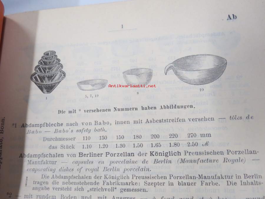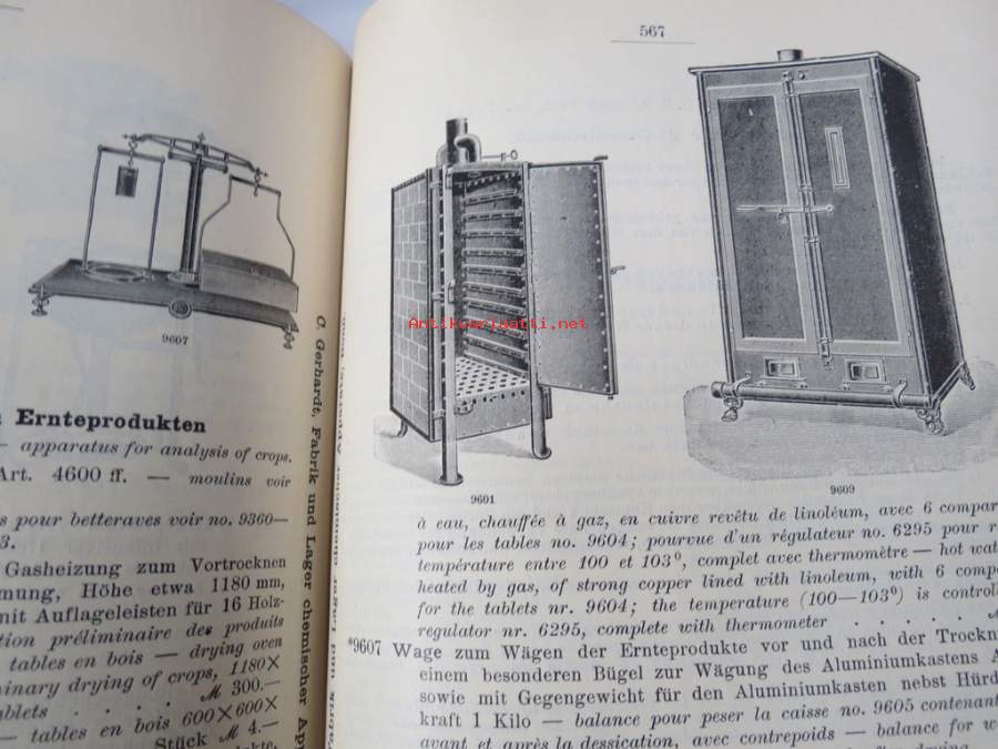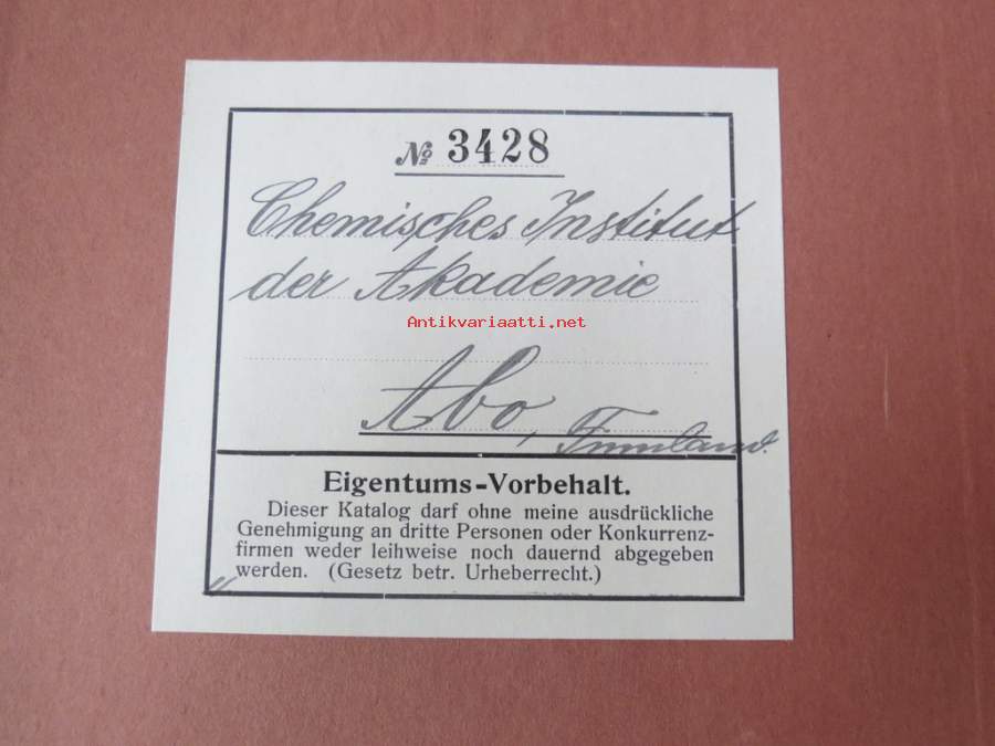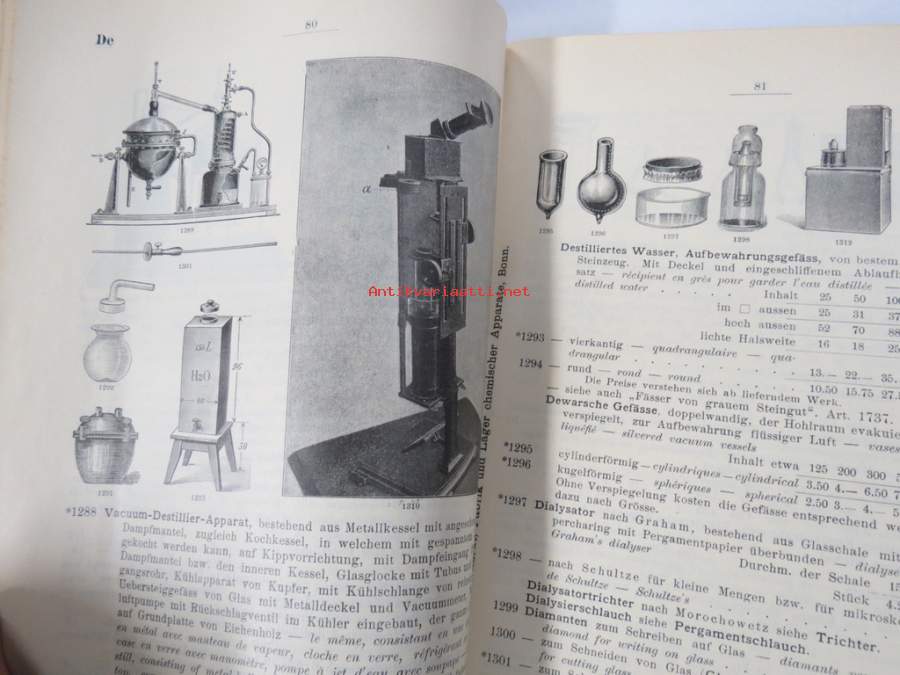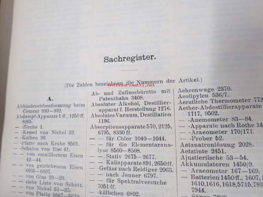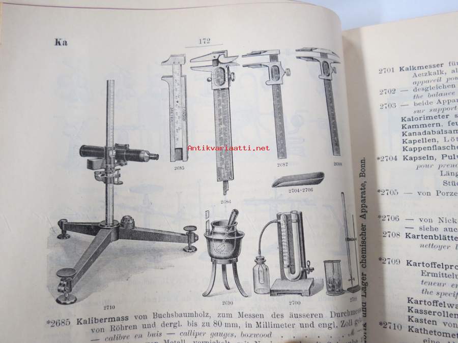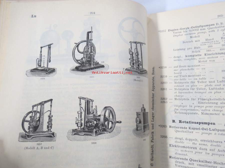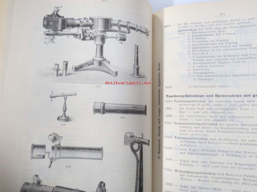 C. Gerhardt Preisverzeichnis über Chemische Apparate und Gerätschaften -kemianalan kojeita ja laitteita, kuvasto, saksankielinen