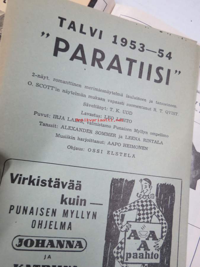 Punainen Mylly - Paratiisi -käsiohjelma Talvi 1953-54; teatteri- / kabaree-esitys