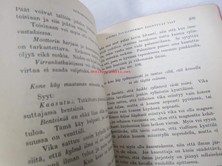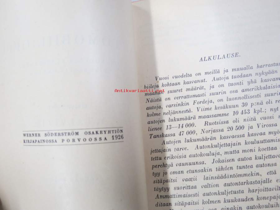 Talvitie Yrjö, WSOY, 19263. painoksen perusteellinen oppikirja autosta, sen rakenteesta ja toiminnasta.