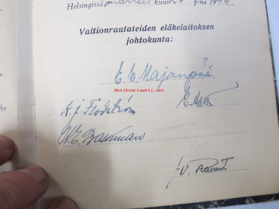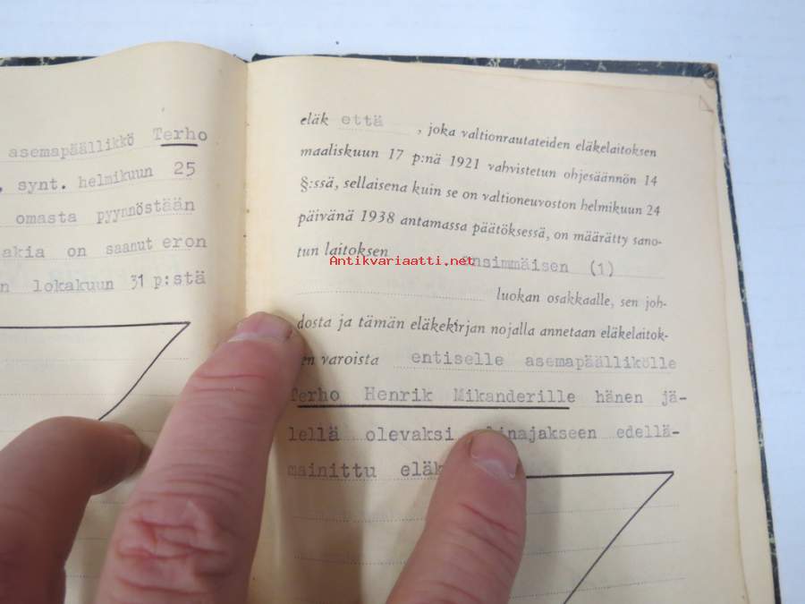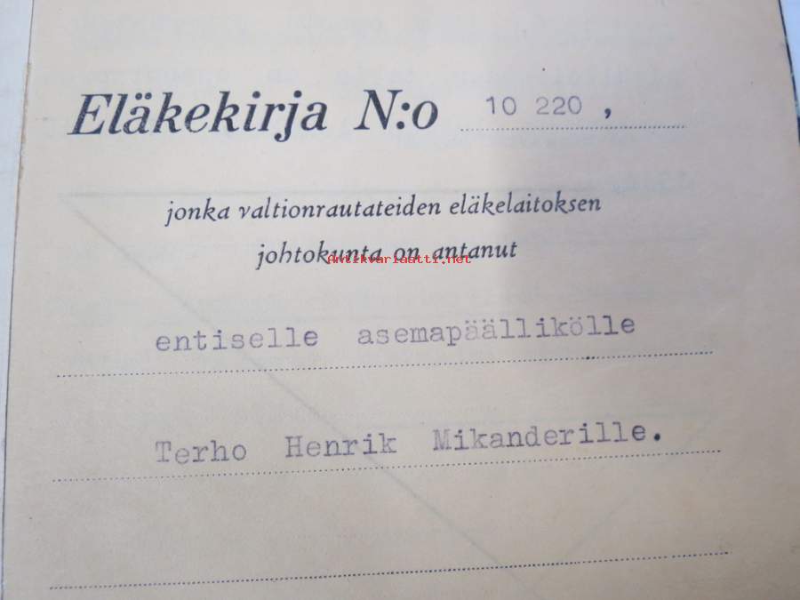 VAltionrautatiet - VR - Eläkekirja nr 10 220, entinen asemapäällikkö Terho Henrik Nikander, 24.11.1944