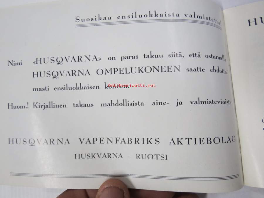 Husqvarna ompelukoneita 1936 -tuoteluettelo