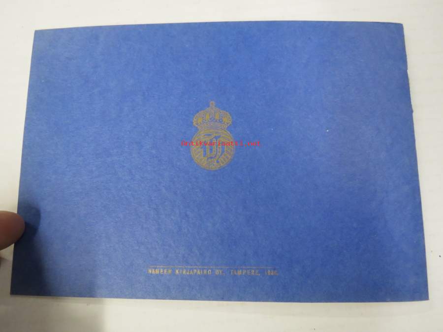 | Saatavilla | 1 kpl | | Julkaisuvuosi | 1936 | | Sivuja | 32 | | Kunto | K3 | | Sidonta/painoasu | Nidottu (pehmeäk.) | | Kielet | Suomi |
