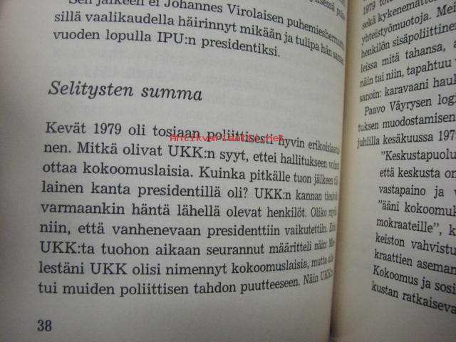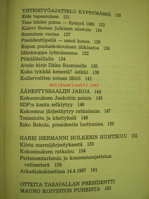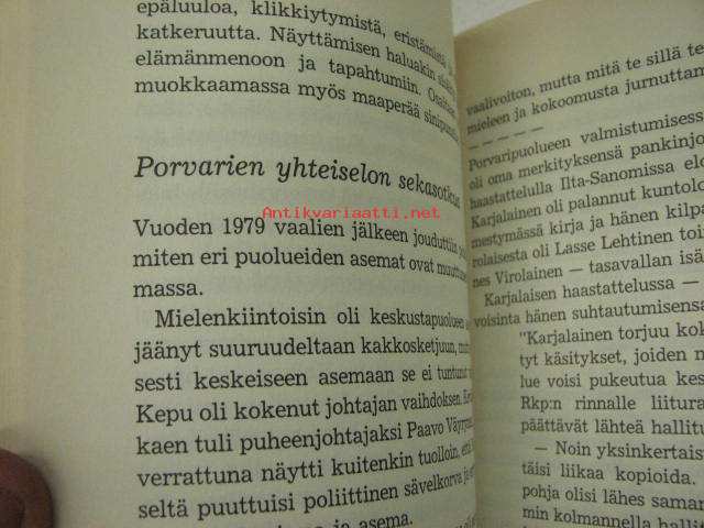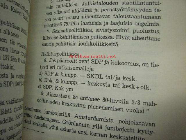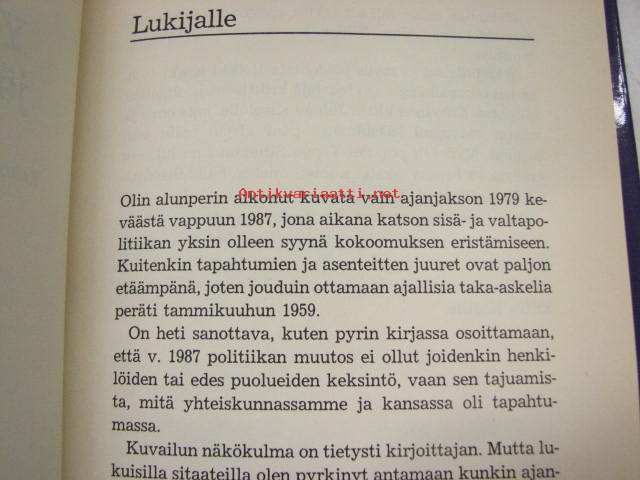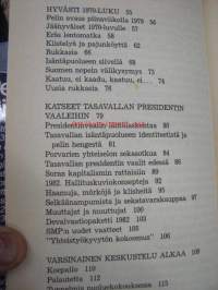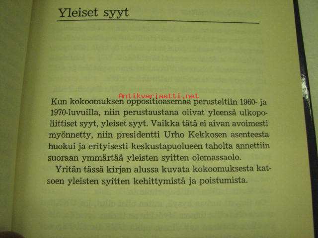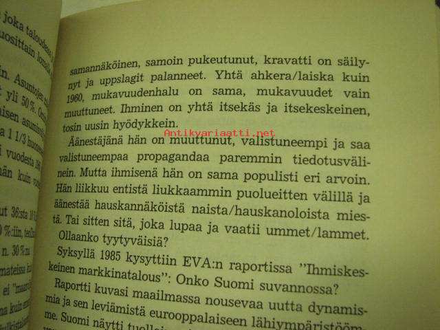 | Saatavilla | 1 kpl | | Julkaisuvuosi | 1988 | | Sivuja | 172 | | Painos | 1. | | Kunto | K3 | | Sidonta/painoasu | Sidottu (kansipaperit) | | ISBN | 951-20-3316-X | | Kielet | Suomi |