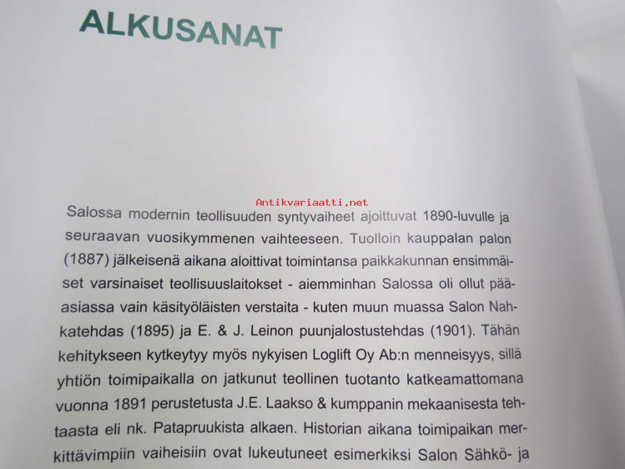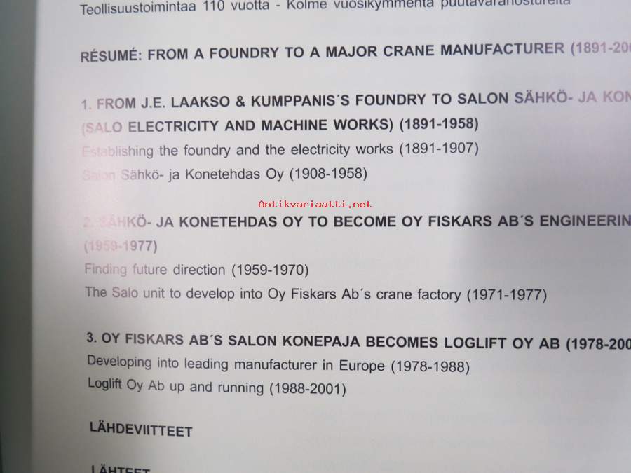 Patapruukista nosturitehtaaksi 110 vuotta J.E. Laakso, Salon Mekanillinen tehdas, Salon Sähkö- ja Konetehdas Oy, Fiskars Salon Konepaja ja Loglift Oy historiaa