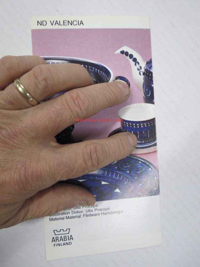 Arabia Valencia ND design Ulla Procopé -myyntiesite malli- ja mittatietoineen