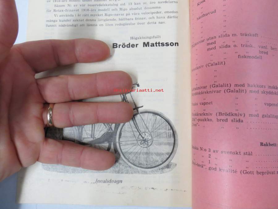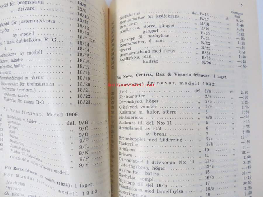 Bröder Mattsson Jakobstad Parti-prislista å velocipeder och velocipeddelar 1936