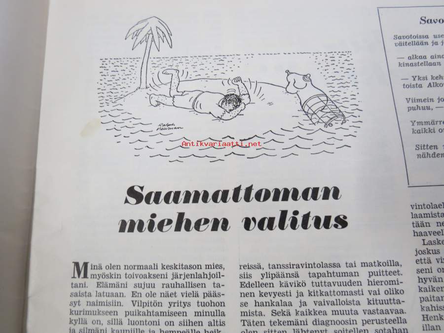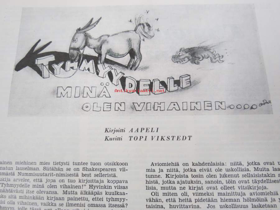 | Saatavilla | 1 kpl | | Julkaisuvuosi | 1954 | | Sivuja | 36 | | Kunto | K2 | | Sidonta/painoasu | Lehti | | Kielet | Suomi |
