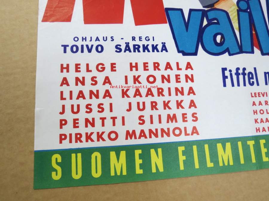 Miljoonavaillinki -elokuvajuliste, käsikirjoitus Mika Waltari, ohjaus Toivo Särkkä, osissa Helge Herala, Ansa Ikonen, Liana Kaarina, Jussi Jurkka, Pirkko Mannola