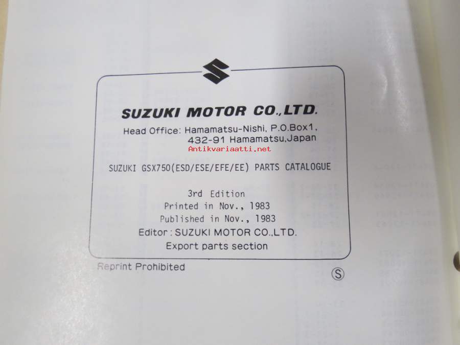 Suzuki GSX750ES (GR72A), GSX750ESD / GSX750ESE / GSX750EFE / GSX750EE parts catalogue -varaosaluettelo