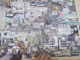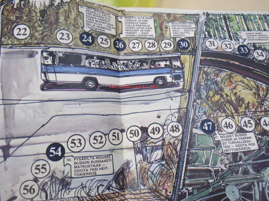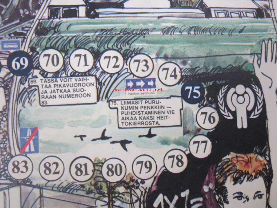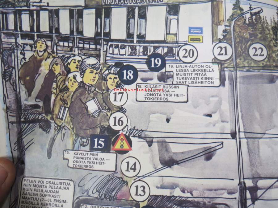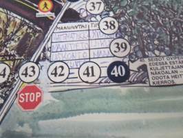 Linja-autoliitto ry, 197921 x 26 cm taiteltuna, avautuu lautapelipohjaksi.