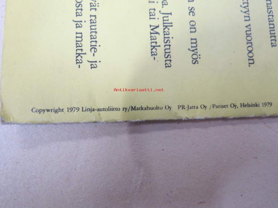 | Saatavilla | 1 kpl | | Julkaisuvuosi | 1979 | | Kunto | K3 | | Sidonta/painoasu | Pienpainate | | Kielet | Suomi |