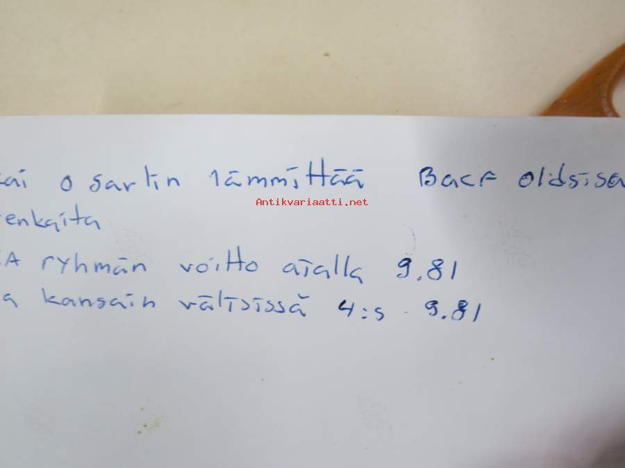 | Saatavilla | 1 kpl | | Kunto | K2 | | Sidonta/painoasu | Valokuva |