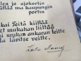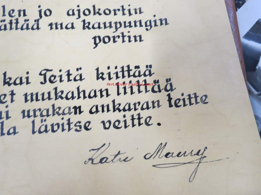 Fru / Rouva Karin von Knorring - elämänuran valokuvia, kiitollisen autokouluoppilaan (Katri Maury) teettämä kansio