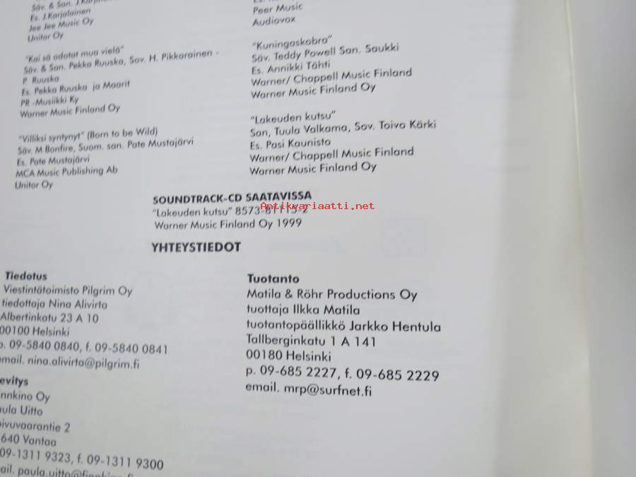 Matila & Röhr Productions, 199921 x 30 cm tuotantoyhtiön julkaisema markkinointikirjanen kaikkine elokuvan taustatietoineen.