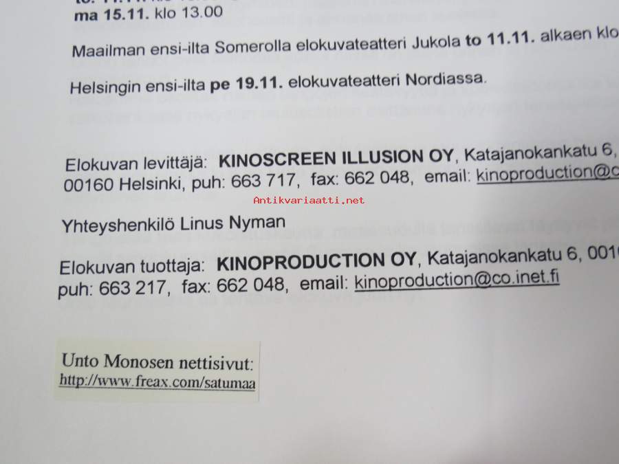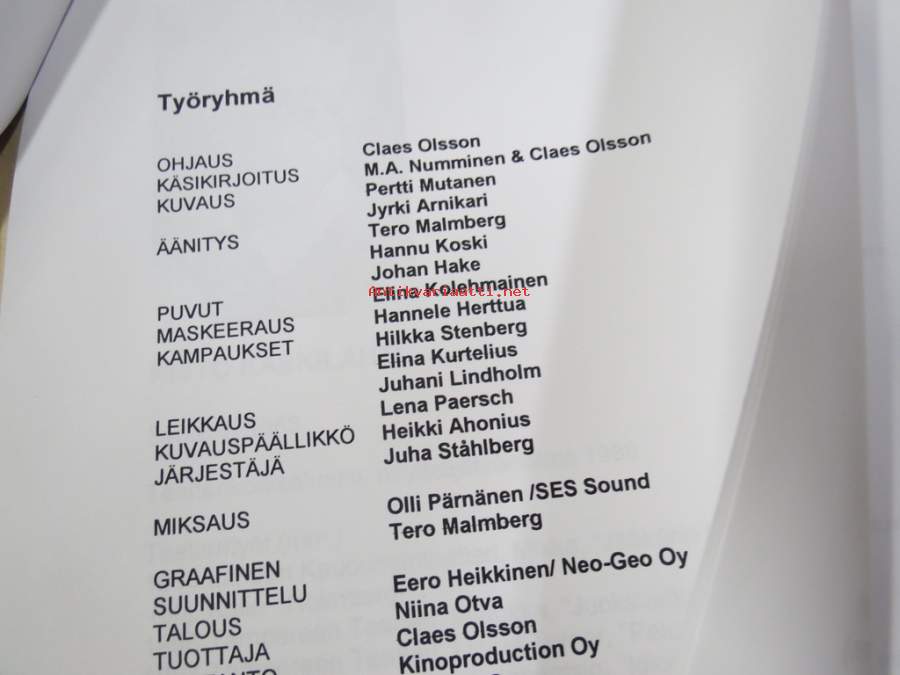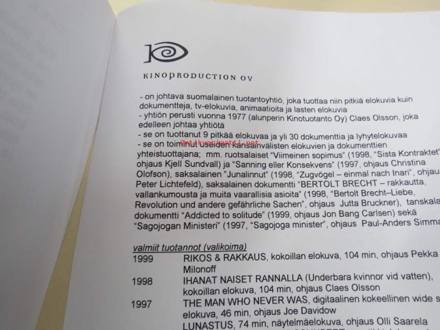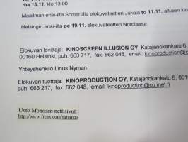 21 x 30 cm tuotantoyhtiön julkaisema markkinointiteksti kaikkine elokuvan taustatietoineen.