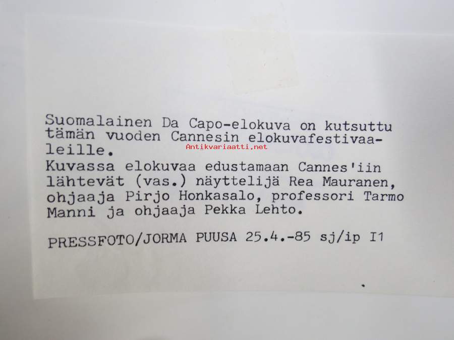 | Saatavilla | 1 kpl | | Kunto | K3 | | Sidonta/painoasu | Valokuva |